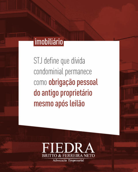 08/10/2025 STJ define que dívida condominial permanece como obrigação pessoal do antigo proprietário mesmo após leilão A 3ª Turma do Superior Tribunal de Justiça reafirmou que, mesmo após o leilão de um imóvel, o antigo proprietário continua pessoalmente responsável pelas dívidas de...[+]
