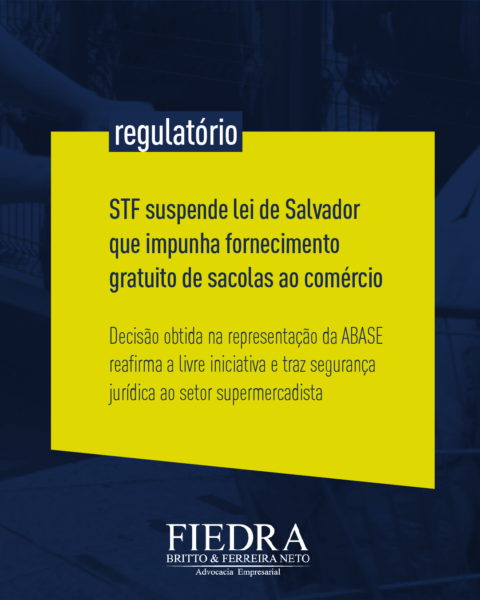 07/01/2026 STF suspende lei de Salvador que impunha fornecimento gratuito de sacolas ao comércio Em decisão proferida no âmbito da Petição nº 15.042, o Supremo Tribunal Federal suspendeu a eficácia da Lei Municipal nº 9.817/2024, do Município de Salvador (BA), que...[+]