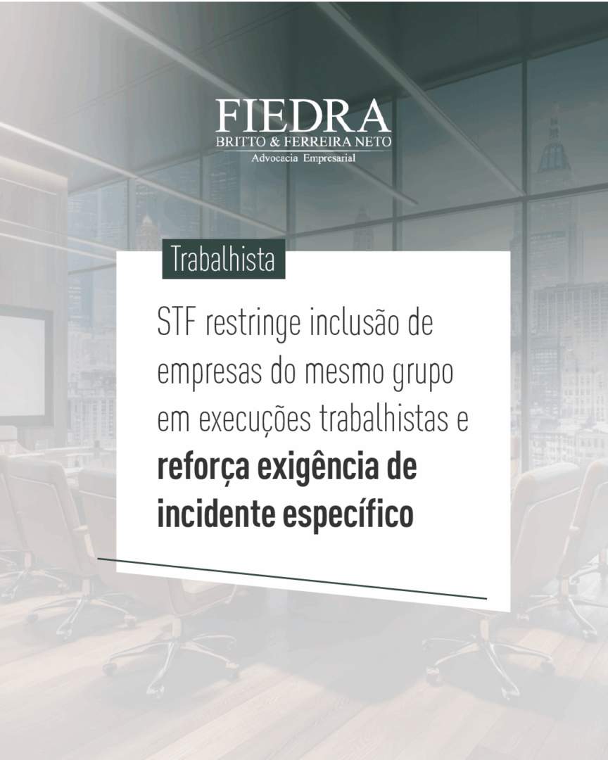 O Supremo Tribunal Federal (STF) concluiu o julgamento do Recurso Extraordinário nº 1.387.795, fixando tese de repercussão geral (Tema 1.232) que restringe a inclusão de empresas do mesmo grupo econômico na fase de execução trabalhista, quando estas não participaram da fase de conhecimento do processo. A decisão, de relatoria do ministro Dias Toffoli, marca importante mudança de orientação e será aplicada a mais de 5 mil casos sobrestados nas instâncias inferiores.